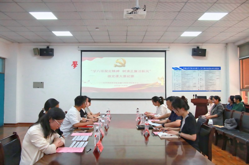 为深入学习贯彻中央八项规定精神,推动党风廉政建设,巩固深化党纪学习教育成果,5月29日下午,金融与贸易学院于1号楼112会议室举办“学八项规定精神,树清正廉洁新风”主题微党课大赛。我院党委书记吕鹏、校纪委综合办公室科长刘洋、各教师党支部书记及学生党支部书记参与本次比赛。