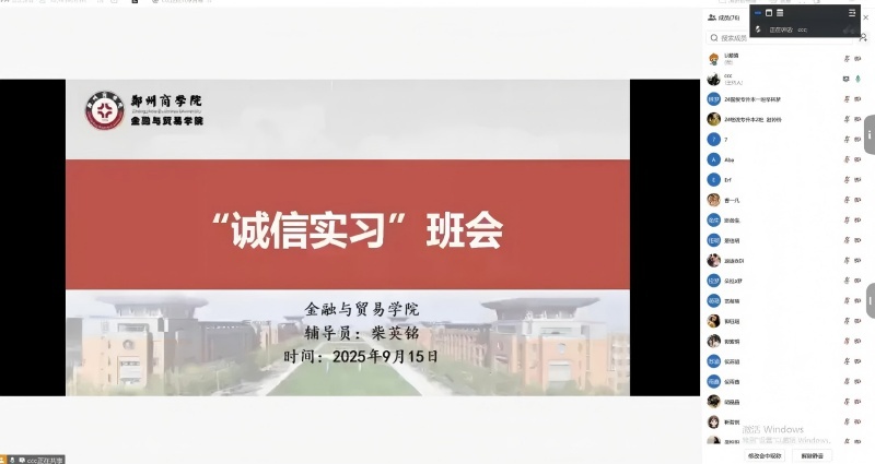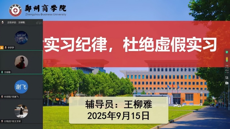 为强化毕业生职业道德教育,引导树立诚信实习理念,规范实习实践行为,9月15日,金融贸易学院面向2026届全体毕业生组织召开了“诚信实习”线上主题班会。