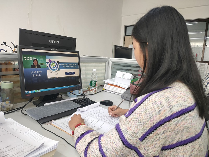 本次专场培训邀请河南大学陈卫华副教授和华北水利水电大学李海华教授主讲。陈教授以“课程思政建设:知与行”为主题,阐述了课程思政建设的任务、目标、路径和期待,并以知、行两个方面为切入点,详细介绍了课程思政是什么,做什么,如何做。李教授以“案例式教学在《环境监测》线上线下混合式教学中的应用实践”为主题,介绍了案例式教学的原则和方法,并展示了案例式教学在《环境监测》线上线下混合式教学中的一些成果。