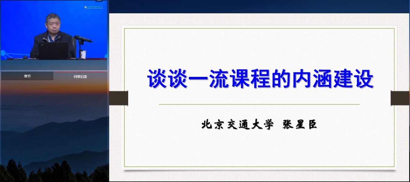 本次培训邀请原北京林业大学教务处处长黄国华教授、清华大学邢沁妍副教授、北京邮电大学卢志鸿教授和北京交通大学张星臣教授主讲。黄国华教授以“一流课程的实践和思考”为主题,结合北京林业大学国家一流课程建设的情况,分享了在国家一流课程建设及应用方面的的实践经验,系统分析了一流课程校内、校际和社会应用的情况。邢沁妍教授以“传承创新,同学同行”为题,解答了传统课程如何出新,一流课程怎样一流的问题,并强调要将“生活化”融入课堂,坚持创新;要搭建层层递进的知识图谱和逻辑思维训练体系,坚持与时俱进。卢志鸿教授以“夯实内涵,创建一流”为题,介绍了《英语视听说》这门课程从国家级精品课程到国家一流课程的心路历程。张星臣教授以“产出导向的一流课程内涵建设”为题,解读了思政内涵建设、能力导向内涵建设及两性一度内涵建设,并阐述了一流课程与实际需求深度结合的问题。