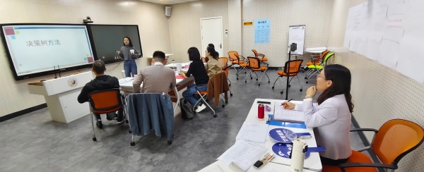在为期四天的学习中,黄淮学院刘献丽主任和资深FDW引导员关英子老师精心设计研修环节,营造出轻松愉悦地学习氛围,鼓励学员积极挑战自我,打破固有教学定式,尝试在教学理论指导下采取有效的教学策略。在引导员的专业带领下,学员以BOPPPS教学模组为框架进行主题课学习,连续三轮分组微型教学演练,结合同伴回馈的方式,不断复习教学模组设计、不断拆解反思教学行为、不断尝试新的教学策略及教学技巧。在此过程中,点点官网FDW引导员郭峰老师参与了本次引导的全部教研过程及第一小组的学习过程,并完成了8轮教学引导演练。