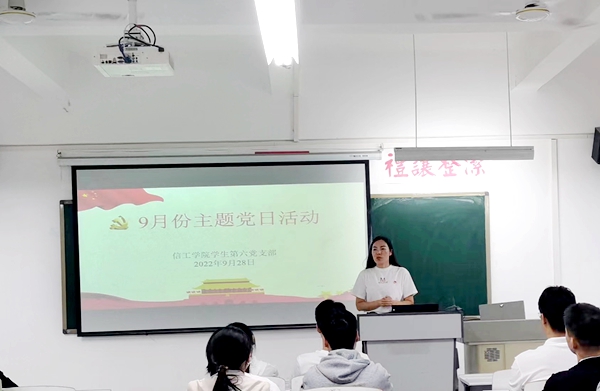 为深入学习贯彻习近平新时代中国特色社会主义思想,庆祝中国共产党成立101周年,喜迎党的二十大胜利召开,引导广大党员以崭新面貌、新作为奋进新征程担当新使命,以实际行动为党的二十大献礼。信工学院教工党支部、各学生党支部于2022年9月,陆续开展了“学习贯彻新思想,青春献礼二十大”主题党日活动。本次主题党日活动采用利用网上资源学习和党员分享相结合、拍摄喜迎二十大短视频的形式进行。
