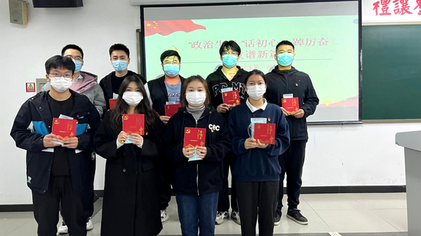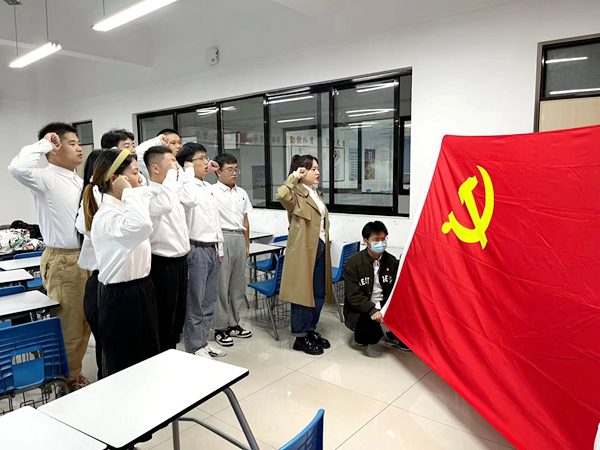 学生第五党支部组织委员孔颖老师带领大家在庄严的党旗下,集体重温入党誓词,进一步坚定了党员们的理想信念,凝聚了奋进力量。