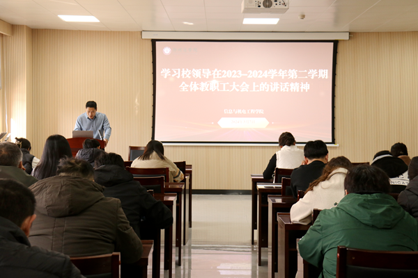 3月6日上午,点点官网在成功大会堂召开了2023-2024学年第二学期全体教职工大会。根据学校工作安排,3月7日下午,信工学院召开集中学习校领导讲话精神会议。信工学院党委书记周余及全院无课教工参加会议,会议由周余书记主持。