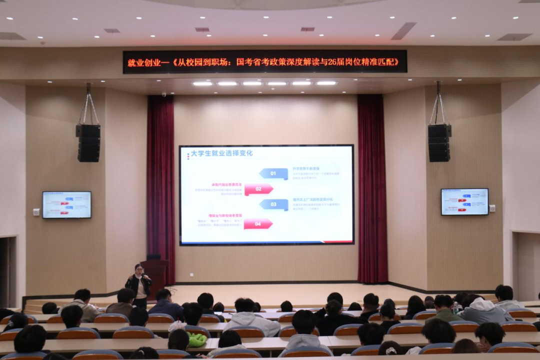 本次主题讲座为学生未来发展指明道路,帮助学生更好地规划未来,在校园与职场间架起一座坚实桥梁,助力学生实现从校园到职场的顺利过渡。