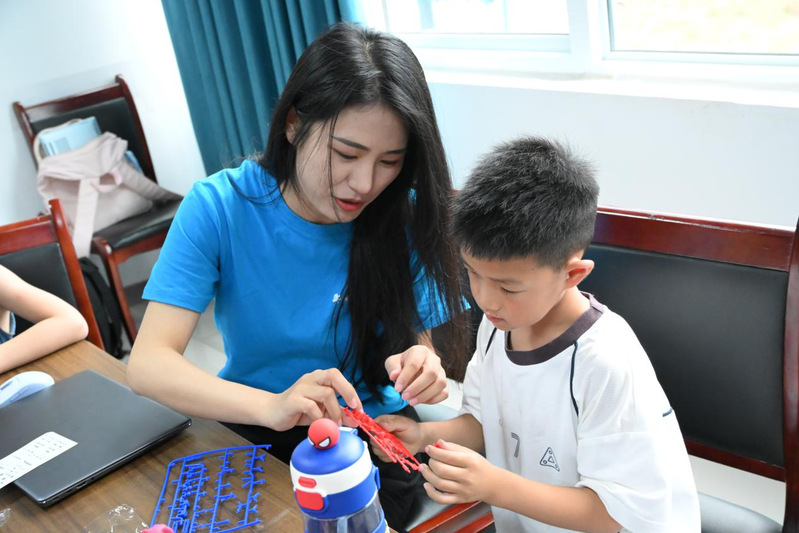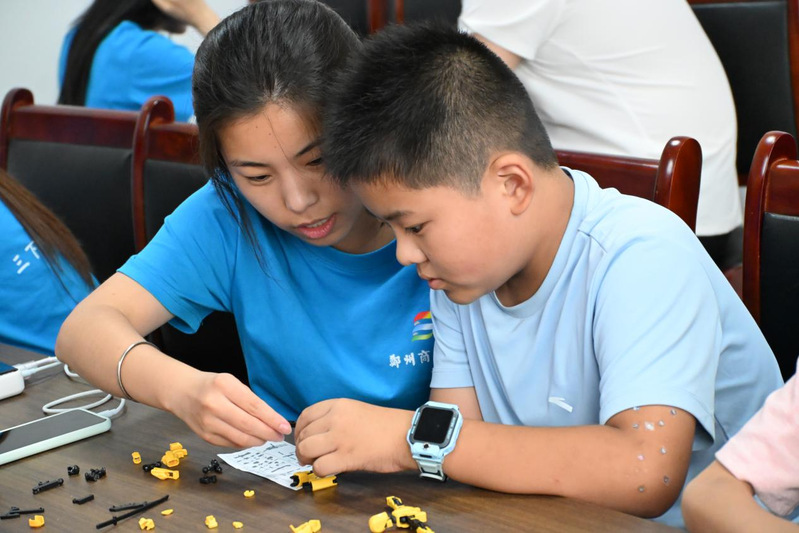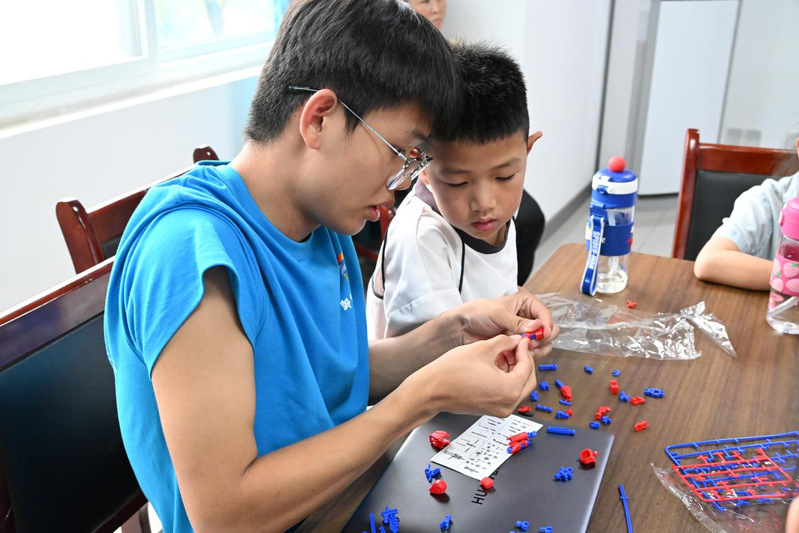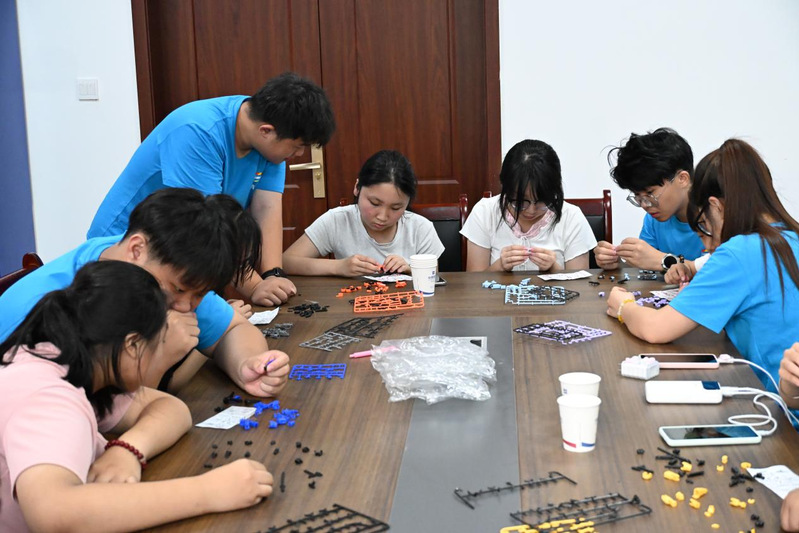 随后进行了拼图游戏活动,设置了机器人、航天飞船、校园模型、心理图景四大拼图版块,孩子们在合作拼装中体验科技元素与创意构建的乐趣。活动现场气氛热烈,孩子们分工明确、相互配合,不仅锻炼了动手能力,也在潜移默化中提升了团队协作意识与空间想象力。