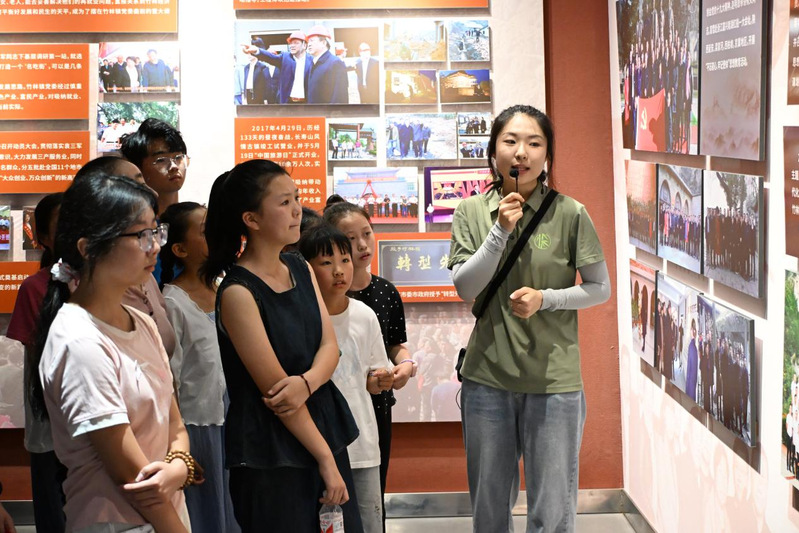 首先,志愿者们与孩子们一同走进竹林博物馆,踏上了一段沉浸式的本地文化探索之旅。通过一张张珍贵的老照片、一段段生动的历史介绍,了解竹林镇的发展脉络,感受“爱竹林、比贡献、谋发展、勇创业、讲文明、共富裕”的竹林精神。历史在展厅中娓娓道来,家乡的变迁也在孩子们心中悄然生根,为他们埋下了关注家乡、热爱家乡的种子,也让志愿者们感受到本地文化的独特魅力。