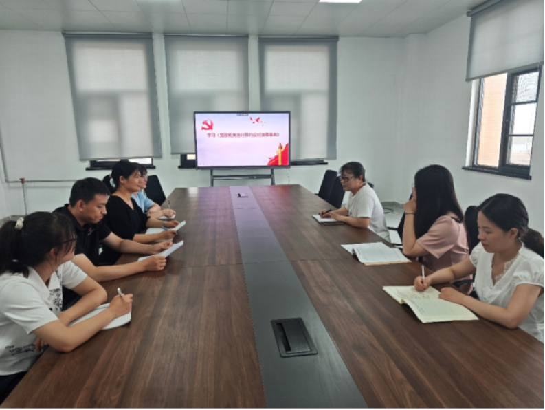 2025年6月23日下午,大数据学院教师第四党支部以“学规纪锤炼坚强党性 砺作风践行使命担当”为主题,顺利开展6月主题党日活动。本次活动由党支部书记沈洁同志主持,全体党员围绕习近平总书记系列重要讲话精神、《党政机关厉行节约反对浪费条例》等内容展开深入学习研讨,进一步强化党性修养,凝聚担当共识。