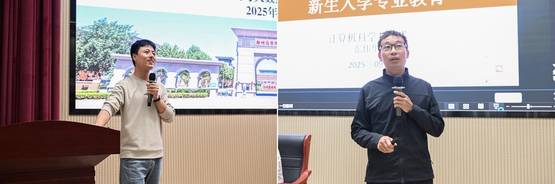 本次新生专业教育重点对各专业的发展前景、就业方向与就业现状、实训条件、师资团队、专业考证与技能大赛、学习方法等方面进行详细讲解。计算机科学与技术专业教研室主任赵鹏阳点明计科专业的“王牌”定位,拆解课程体系,含核心、实践及前沿选修课程,分析考研(重理论科研)与就业(重技术应用)的课程差异。张伟华教授解读专业内涵等,强调培养目标,介绍了实验室开放计划、学科竞赛支持等学习资源,鼓励新生规划学业、参与实践。