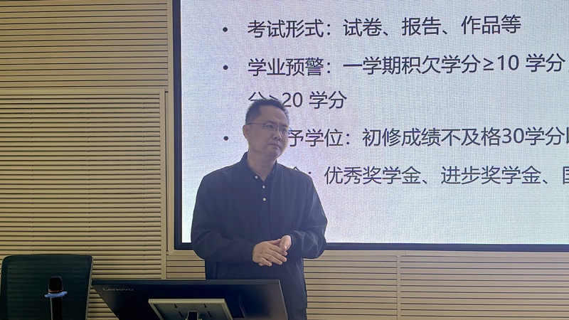 数据科学与大数据技术专业教研室主任李晓东围绕专业介绍、专业方向、专业的发展形势、毕业生就业前景、如何规划大学生活五大核心模块展开详细讲解。最后,他以“不懈努力成就目标”为核心寄语,激励新生在大学期间明确方向、持续奋进,逐步实现个人成长与职业发展的初步规划。