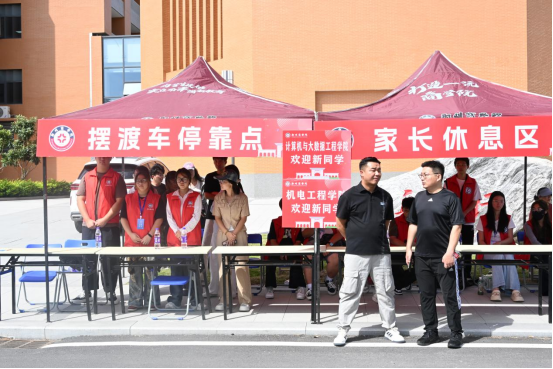 学生志愿者提前在学校大门前、宿舍楼前等地方摆放桌椅、搭建帐篷,设立“新生接待服务站”。大家分工协作,一部分志愿者引导队伍、核验信息,另一部分主动帮助新生搬运行李,并陪同前往宿舍,一路介绍校园布局和生活服务。从报到注册到入住指引,志愿者们以周到细致的服务,保障了整个报到流程井然有序,也让初入校园的新生倍感温暖。
