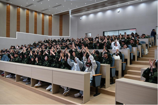 在互动环节,李老师通过“毕业后,你会选择就业还是创业?”等问题引发新生思考,鼓励大家尽早确立目标,积极参与创新创业实践活动,充分利用学校众创空间、大创项目等平台资源,提升综合竞争力。