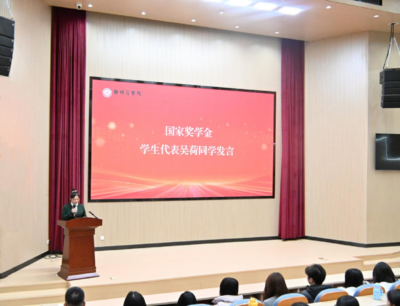 颁奖后,优秀学生代表分享了成长感悟。国家奖学金获得者吴荷同学分享了她在专业学习与科研创新道路上的心得与感悟;国家励志奖学金获得者杨兀芝同学则深情讲述了自己不畏艰难、励志成长的奋斗历程,深深打动了在场师生。