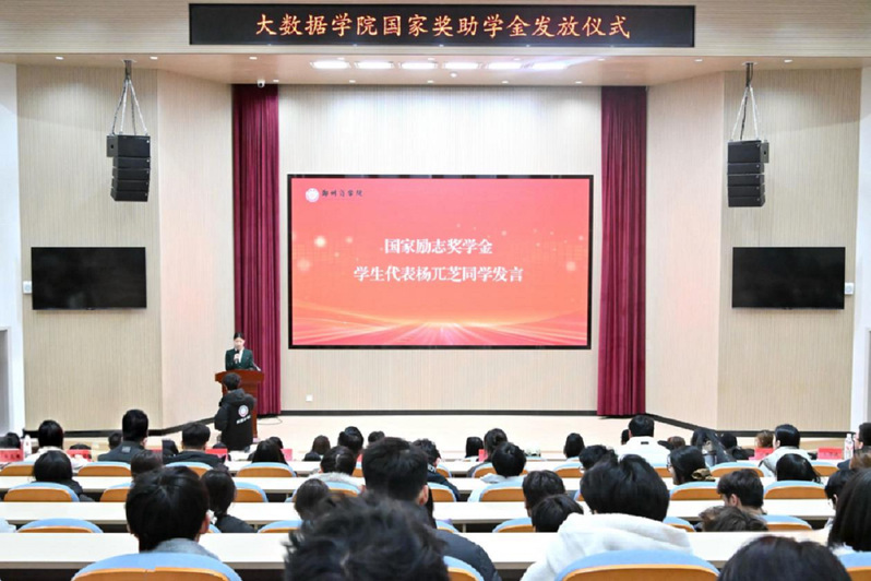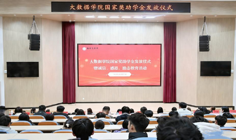 为扎实推进资助育人工作,充分发挥奖助学金的激励作用,大数据学院于11月27日在敏行楼报告厅举行2025年度国家奖助学金发放仪式。学院党委书记李洪洋、校学生资助中心陈梦雪老师、团委书记张培及全体辅导员老师与获奖学生代表共同参加。