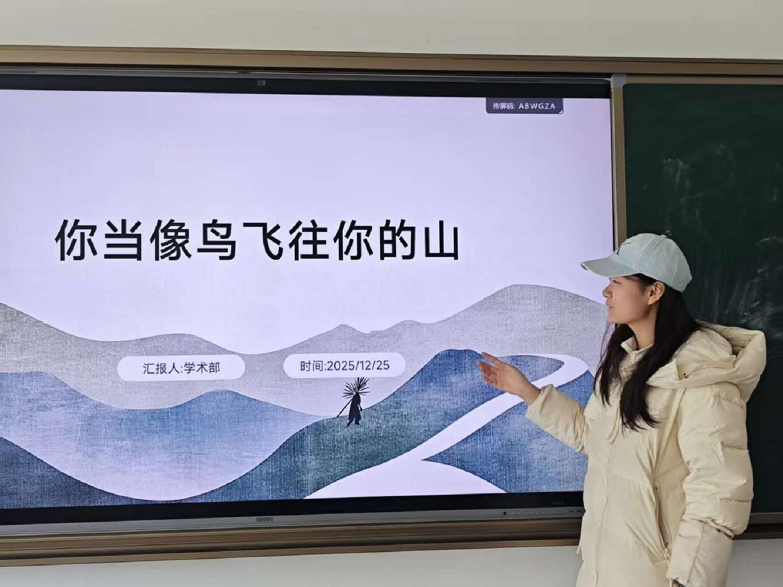 为引导大数据学院同学在文字中汲取成长力量、拓宽认知视野,锤炼独立思考与深度表达的核心素养,大数据学院于12月25日在敏行楼A302举办“心向山海,步履不停 ——《你当像鸟飞往你的山》读书分享会”活动。