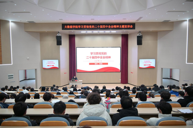 为深入贯彻党的二十届四中全会精神,12月18日,我院于敏行楼报告厅举办专题学习讲座。本次讲座由我院团委书记张培主持,邀请马克思主义学院的马治远老师进行理论宣讲,大数据学院全体行政人员、无课教师和青年学生代表参加。