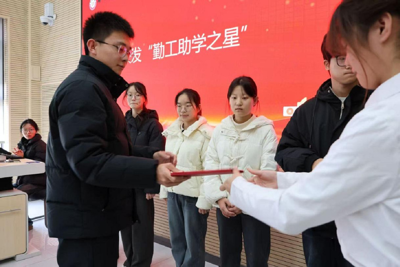 在激动人心的颁奖环节,首先表彰的是“勤工助学之星”。获奖学生代表包括彭嘉琪、樊松鸿等10名同学,这些学子在勤工助学岗位上展现了高度的责任感和敬业精神,不仅出色完成工作任务,更在学业上取得优异成绩。他们在工作中锤炼品格,在实践中提升能力,充分展现了新时代大学生的良好风貌。王海迪老师为获奖学生颁发证书,并寄语他们继续发挥模范带头作用。