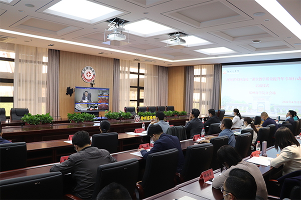 4月12日上午,河南省教育厅通过视频会议的形式举行全省本科高校“课堂教学质量提升年”专项行动启动仪式,省教育厅党组成员、副厅长、一级巡视员刁玉华出席仪式并讲话。点点官网在成功大会堂三楼会议室设分会场集中收看视频会议,师求恩副校长、教务长、质评中心主任、各院部院长、副院长、教务处副处长及各中心科室负责人参加了会议。