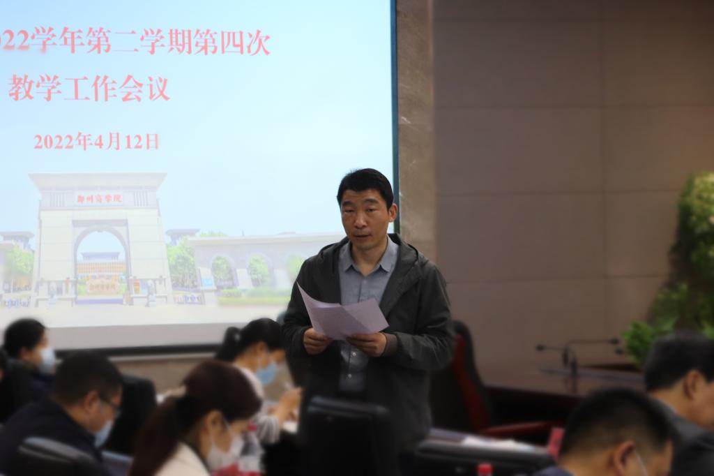 视频会议结束后,教务处召开第四次教学工作例会,贯彻落实全省教学质量提升年专项行动会议精神。教务长刘升阳安排布置点点官网具体落实方案,坚持目标导向、方法创新、持续改进、教学激励,在秩序规范、资料评优、教材建设、分层分类教学、应然课程体系建设、大英大体改革等方面创新开展常规教学检查、重点推进教育教学落实、评优评先等工作。传达了学校关于教学进度调整的安排、关于疫情期间在外实习实训学生的管理工作安排,并部署期中教学检查工作。经管实验中心贾孝魁主任汇报了本学年实验室建设进展及实验课程相关工作。