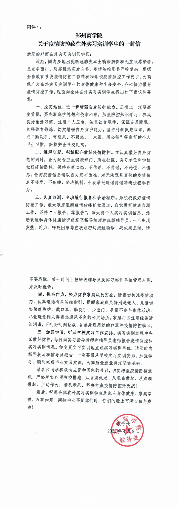 本次走访检查督导前,结合当前疫情严峻形式,教务处下发《taptap点点关于疫情防控时期加强毕业实习实训工作管理的通知》,通知各院部在加强校外实习实训管理的同时将《taptap点点关于疫情防控致在外实习实训学生的一封信》发给每名在外实习实训学生,并排查了在外实习实训学生的安全状况,在关切学生的同时再次提醒学生注重个人防护和健康安全。