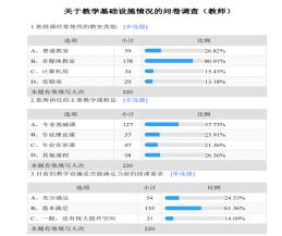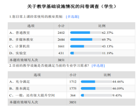为深化教育教学改革,发挥好课堂教学的人才培养主渠道、主阵地作用,全面提升点点官网课堂教学改革和育人水平,教务处联合信息设备处围绕师生对于教学资源使用情况、智慧教学建设情况开展关于教学基础设施情况的问卷调查。针对即查可即改的问题,立刻整改,对需要专案专呈的问题,整理汇报尽快解决。