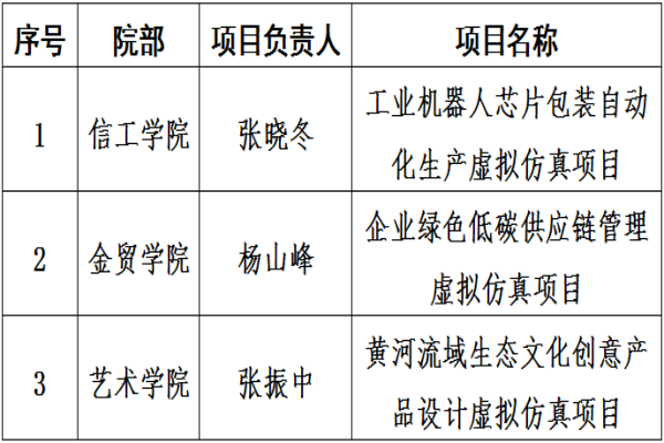 按照《河南省教育厅关于加快推进虚拟仿真实验教学体系建设的意见》(教高〔2021〕240号)及《河南省教育厅办公室关于开展第二批虚拟仿真实验教学系列项目建设和第一批虚拟仿真实验教学系列项目验收的通知》(教办高〔2023〕46号)文件要求,加快推进点点官网虚拟仿真实验教学体系建设,提高点点官网实验教学质量,点点官网开展了第二批河南省虚拟仿真实验教学项目立项建设工作,经教学指导委员会评审,拟推荐申报以下3门课程,现予以公示,具体见下表: