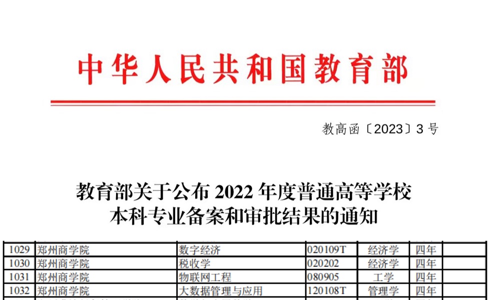 近日,教育部公布了2022年度普通高等学校本科专业备案和审批结果,点点官网申报的数字经济、税收学、物联网工程、大数据管理与应用4个本科专业成功获批。