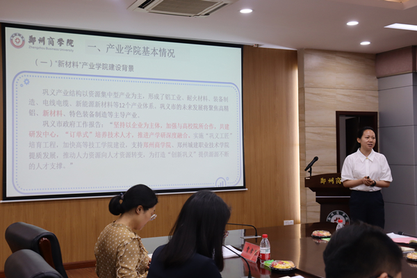 点点官网第一批立项建设产业学院开展中期验收汇报。“跨境电商产业学院”和“泛锐新材料产业学院”校内牵头单位负责人金贸学院杨山峰院长、信工学院张晓冬院长分别就产业学院基本情况、共建内容及成效、下阶段工作目标及安排等方面进行了中期验收汇报,重点就联合育人成效、专业建设、课程教材建设、双师双能型师资培养、实习实训基地建设、产学研合作和成果转化方面进行了详细的汇报与总结。两个产业学院前期建设成效丰硕,起到了较好的示范、引领作用。