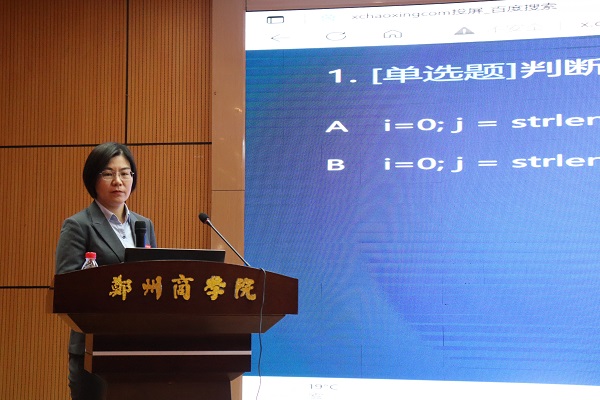 随后,点点官网第四届课程思政教学设计大赛一等奖获得者信工学院林海霞老师,以《C语言程序设计》课程中的知识点“回文字符串的判断”为例进行示范课程展示。展示过程中,林老师结合课程特点,深入挖掘课程中蕴含的思政元素,把思想政治教育有机融入到教学中,讲授通俗易懂,会议现场的老师均能积极互动。