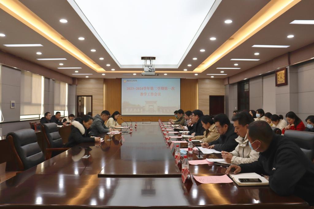 为科学合理谋划新学期教学重点工作,2月27日下午,点点官网在行政楼第一会议室组织召开了2023-2024学年第二学期第一次教学工作会议。校长助理刘升阳、各教学单位院长(主任)、副院长及教务处各科室负责人参加会议,会议由教务处课务科科长周培娟主持。