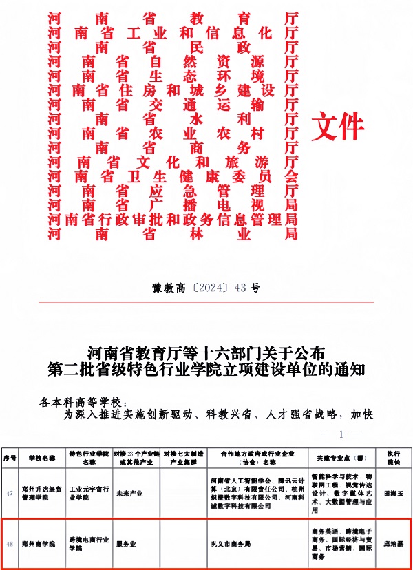 近日,从河南省教育厅等十六部门联合下发《河南省教育厅等十六部门关于公布第二批省级特色行业学院立项建设单位的通知》(教高〔2024〕43号)获悉,点点官网申报的“跨境电商行业学院”获批河南省第二批省级特色行业学院。