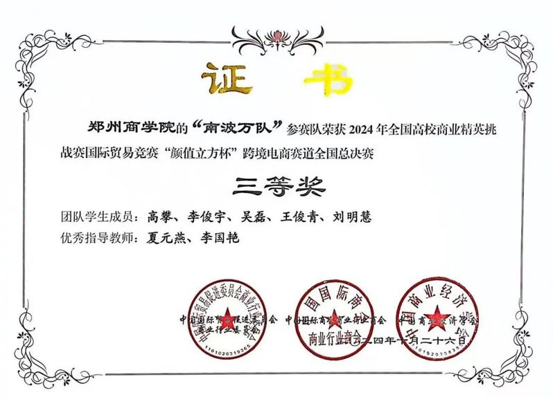 “颜值立方杯”跨境电商赛道全国总决赛三等奖