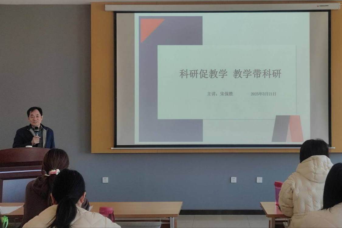 活动中,宋保胜教授围绕“科研促教学,教学带科研”的主题,分享了一系列有助于提升科研与教学水平的具体措施。首先,在科研工作开展过程中,教师可通过多种途径来提升科研能力与拓展科研思路。例如,教师应重视对政策文件的研读,每年的政府工作报告、中央一号文件以及国家重要报告都蕴含丰富信息,深入挖掘可以研究的切入点。同时,教学实践也是科研灵感的源泉,备课、讲课中遇到的疑惑点或需深入阐述的内容都值得关注。此外,成立科研团队定期交流,积极参加科研活动等,都能为教师的科研工作提供有力支持。