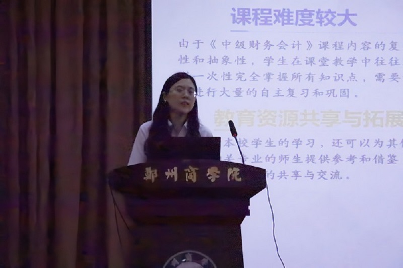 优秀精品课程建设成果分享环节,管理学院教师姜鑫以课程《中级财务会计》为例,从线上教学平台的课程开设、教学资源库的持续丰富和学生学习互动情况详细展示了该课程的建设成果,积极总结经验与不足,从而更加有效地提升学生的学习兴趣与积极性;金贸学院教师朱梦娣以课程《证券投资学》为例,分享了“中心理念引领-双线课程架构-四维共进融合”的建设思路,整合角色扮演、课堂辩论、实地调研分享、情景模拟等教学方法,引导学生自主学习,在学科竞赛、专业社团和考研就业等方面收获颇丰。