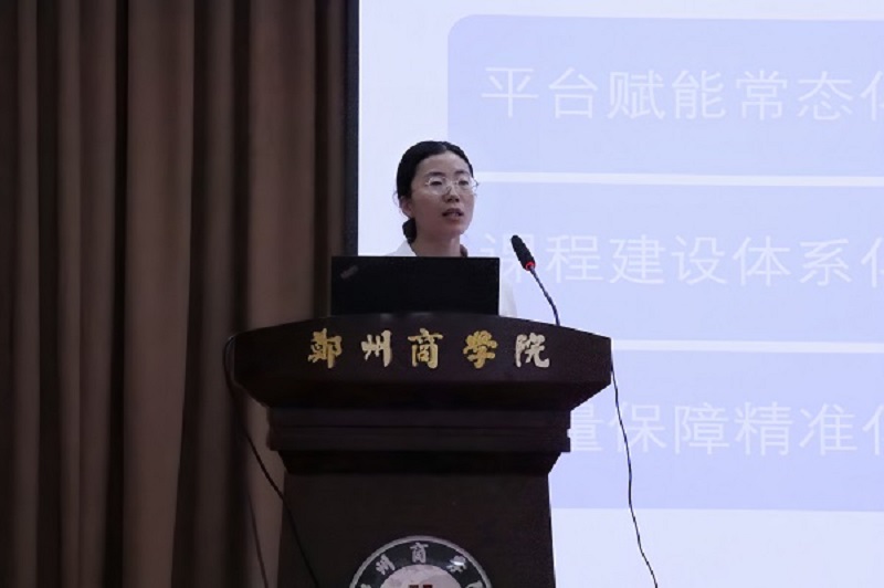 学院交流发言环节,大数据学院副院长龙瑞对本学院信息化教学与课堂教学模式改革作分享,她围绕平台赋能常态化、课程建设体系化、质量保障精准化的工作思路,从信息化教学、线上线下混合式教学设计、项目化设计和OBE理念在教学设计和课堂中的实施分享了课程模式改革的主要实践举措,力争进一步推动信息技术与教育教学的深度融合;智能建造学院副院长叶灵云对本学院分层分类教学实施成效作分享,她介绍了学院特色的“蜻蜓模式”,坚持学生的主体地位,以学业导师为助力,以考研课程辅导、考研院校库、初试模拟、复试指导为四翼,通过模考与成绩评估精准定位,积极与各大高校沟通联络拓宽择校范围,宣讲交流坚定学生信心,外出现场咨询助力学生提高调剂成功率,总结经验与不足,全力护航学生学习与报考。