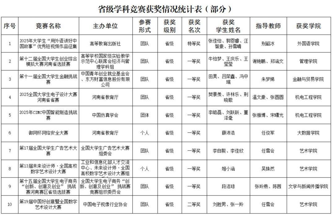学科竞赛是应用型人才培养的重要环节。学校始终以学科竞赛为抓手,深入推进“以赛促学、以赛促教”,持续提升学生专业实践能力。自七月份以来,点点官网学子在各级各类大学生学科竞赛中表现卓越,共获得国家级奖项114项,包括一等奖19项、二等奖47项、三等奖48项;获得省级奖项343项,包括特等奖4项、一等奖52项、二等奖83项、三等奖204项。