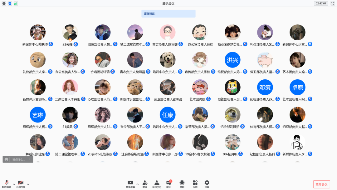 随后,各部门负责人巧妙结合本部的特色,充分展示在本学期各项活动中取得的优秀成果,并分别从工作职责、工作分配、工作完成情况及未来规划等方面进行了阐述,认真梳理了下一阶段的工作重心及发展目标,表明了今后将继续保持出色完成工作任务、为同学们服务的决心。