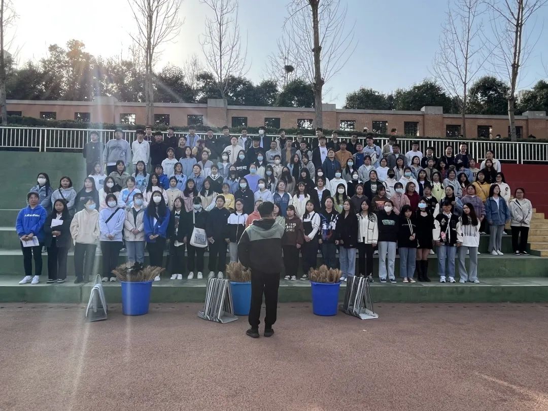 随后,同学们在各班劳动委员的组织下领取劳动工具,于田径场区域进行了打扫。