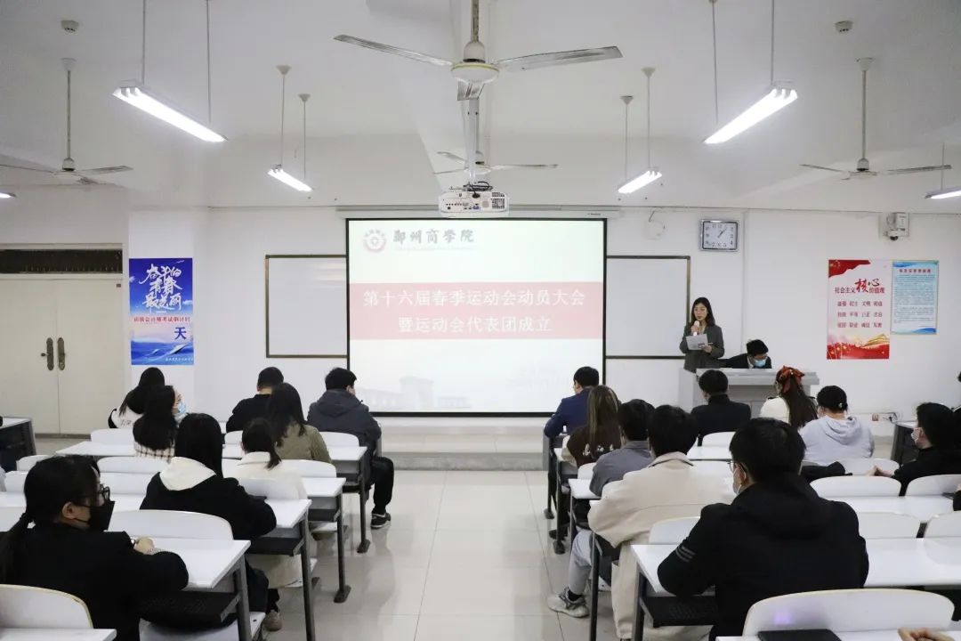会议伊始,由主持人介绍到场嘉宾,接下来张艺端老师宣读《关于成立运动会代表团的决定》,李兆广老师宣读各项目校院两级记录及田径队训练情况,充分鼓舞了运动员们迎战运动会的昂扬斗志。