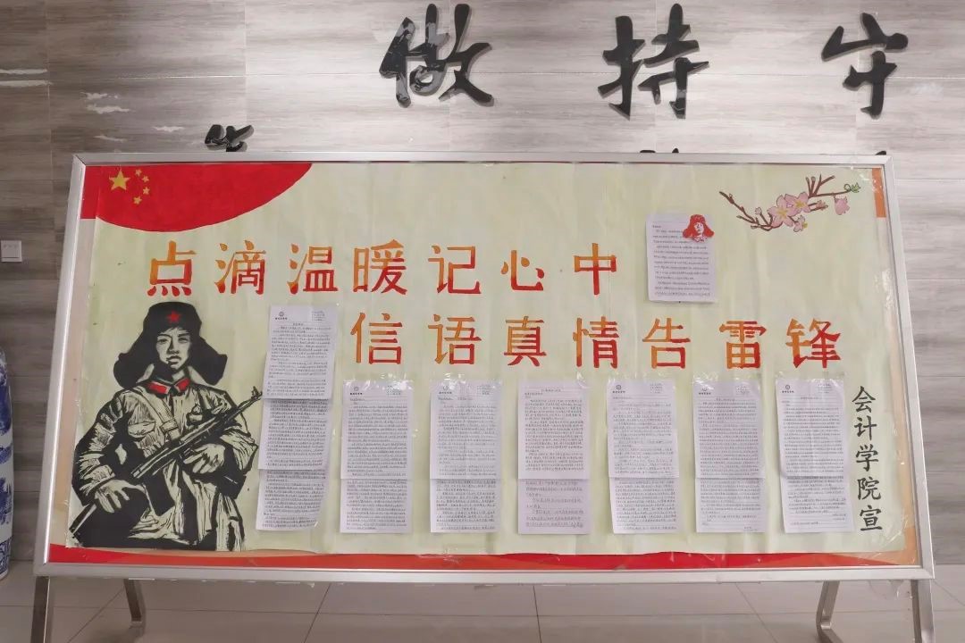 3月10日至3月13日,会计学院开展了“点滴温暖记心中,信语真情告雷锋”信件征集活动,会计学子们通过真情话语告白雷锋,用铿锵文字来传承雷锋精神,用他们的青春的声音来书写他们对雷锋精神的理解。