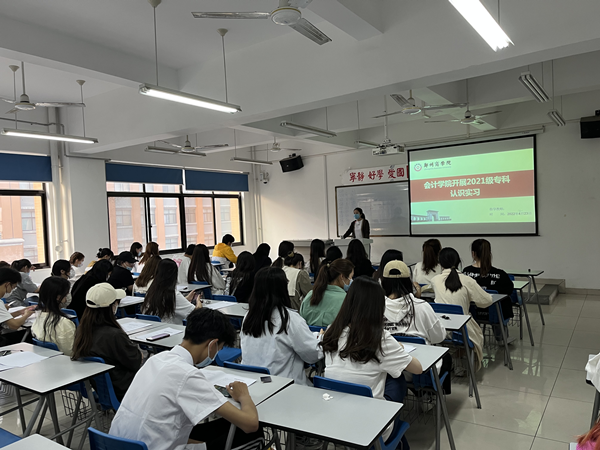 为切实做好2021级专科学生实习实训工作,全方位提升学生对专业知识的认知水平,树立学生的专业自信以及提高学生利用专业理论知识解决实际问题的能力。4月23日,会计学院展开了2021级专科认识实习动员会。此次动员会由指导教师谢盈杰、李璨、王晴、周慧莹四位老师主持,2021级数会专的全体学生参会。
