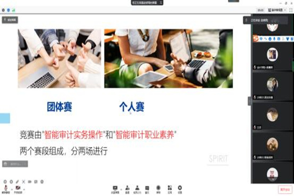 会议伊始,赵明雨老师对本次竞赛的内容、形式及赛前的练习方式等做了简要介绍。本次竞赛共分为智能审计实务操作和智能审计职业素养两个赛段,分两场进行。其中,智能审计实务操作赛段,采用团体赛方式,4人组建一个审计项目组(项目经理、3名审计员四个岗位),在180分钟内完成审计任务;智能审计职业素养赛段采用单人赛方式,选手在60分钟内分别独立完成相同的赛题。比赛形式采用线上线下相结合分赛场形式进行。各分赛场通过线上视频连线,实现线下比赛,线上监考。随后,参会老师就本次竞赛的细节做了补充说明。