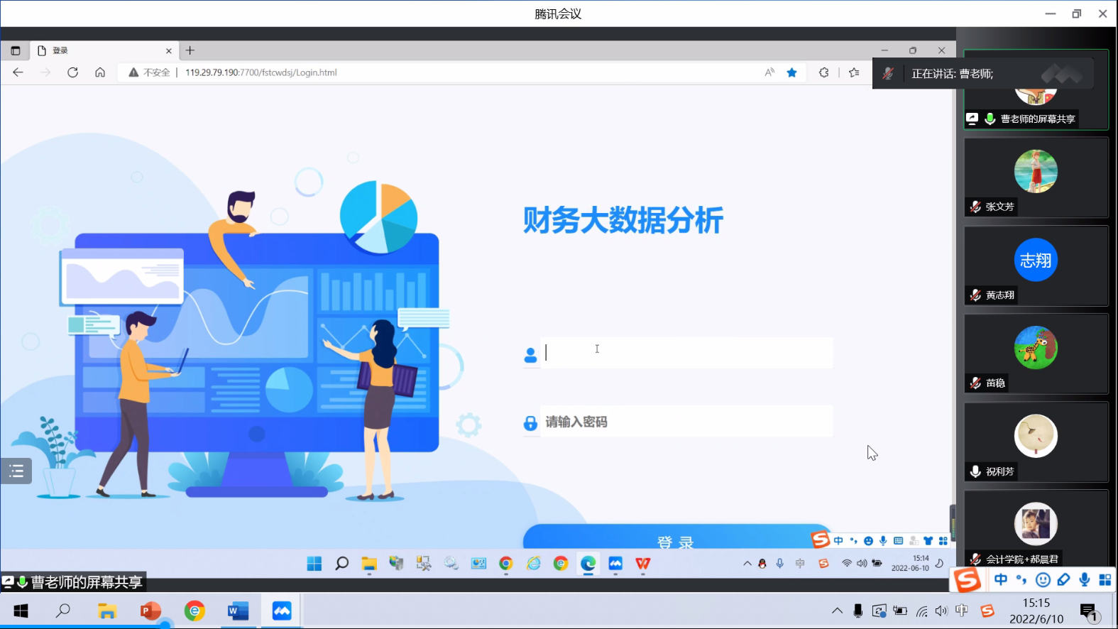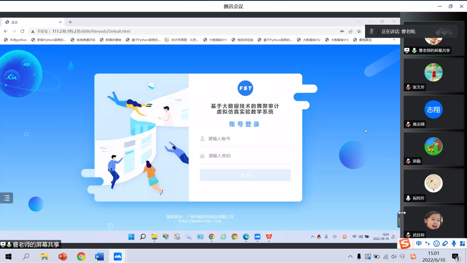 为进一步推动智能审计教学改革,适应数字经济的发展要求,使学生更好的掌握智能审计知识和应用技术,2022年6月10日,广州福思特科技有限公司(以下简称“福思特公司”)通过线上会议与taptap点点会计学院深入交流了由该公司开发的大数据虚拟仿真教学平台的功能及使用方法。会计学院祝利芳院长、刘金金副院长及各教研室主任参加了此次交流会。