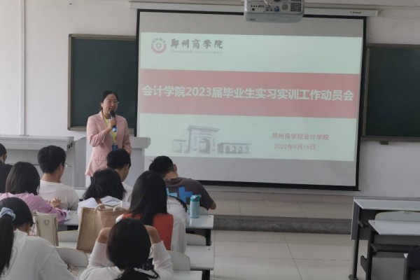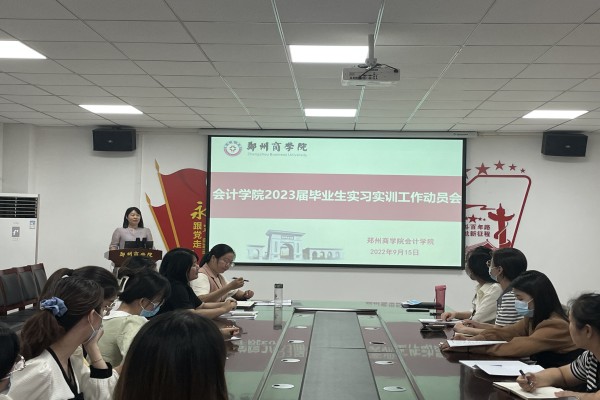 为保障毕业生毕业实习工作顺利开展,9月15日-16日,会计学院在广恩大楼顺利召开2023届毕业生毕业实习动员大会。会计学院院长祝利芳、党委书记梁鹏、副院长刘金金、指导教师、辅导员及2023届在校毕业生参加了会议,会议由副院长刘金金主持。