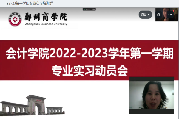 为提升大数据背景下学生运用专业知识解决实际问题的能力,掌握分析各种数据的技能,增强会计专业学生的实践能力和水平,11月9日会计学院在线上开展2022-2023学年第一学期专业实习动员会。会计学院副院长刘金金、专业实习指导老师及20级会本、20级注会、20级管会学生参加此次动员会。
