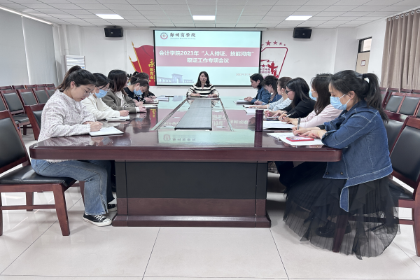 根据《河南省教育系统落实“人人持证、技能河南”建设工作任务实施方案》的文件要求,为深入推进我院“人人持证、技能河南”建设工作,确保此项工作高起点开局、高质量推进,3月9日下午,我院组织召开“人人持证、技能河南”取证工作专项会议。会计学院副院长刘金金、各教研室主任和19级辅导员参加了此次会议。