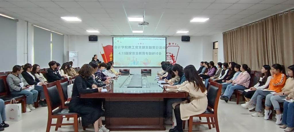 国家安全工作是党治国理政一项十分重要的工作,也是保障国泰民安一项十分重要的工作,维护国家安全,人人有责,人人可为。为深入贯彻落实党的二十大精神,全面贯彻落实习近平总书记总体国家安全观,积极主动履行维护国家安全的义务,加强国家安全意识,提高对国家安全的认识与责任感,4月13日,会计学院教工党支部举办“增强国家安全意识,共同维护国家安全”主题党日活动,开展4.15国家安全教育专题研讨会,本次会议由会计学院教工党支部书记白静主持,会计学院教工党支部全体党员及入党积极分子参加。