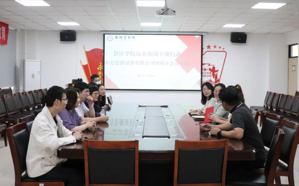 为贯彻落实全国、全省2023届普通高校毕业生就业创业工作会议精神,持续推进会计学院就业工作,对接企业用人需求,拓宽毕业生就业渠道和资源,搭建校企合作平台,夯实2024届毕业生毕业实习岗位供给“压舱石”,按照学校深入推进“访企拓岗促就业”专项行动的要求。5月31日上午,我院在广恩楼会议室开展2024届毕业生访企拓岗河南企业帮商业管理有限公司专场推进会。我院院长祝利芳、副院长刘金金、行政秘书杨茗涵、申万宏源证券有限公司河南分公司相关经理参加本次推进会。