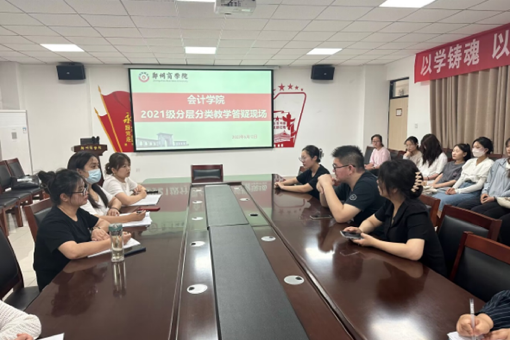 为满足学生个性化职业发展需求,促进学生高水平考研和就业,落实2021级本科分层分类教学工作,提高人才培养质量,6月12日下午,会计学院管理会计教研室主任武佳莉、审计教研室主任郝晨君、资产评估教研室主任刘文秀在广恩楼会议室开展分层分类教学答疑会。