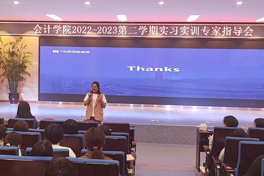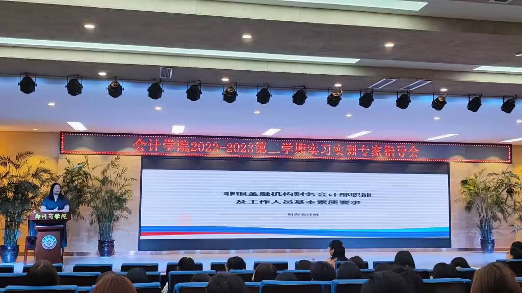 为贯彻落实应用型人才培养目标,切实做好我院学生实习实训专项工作,6月12日晚上,会计学院在自力楼报告厅开展2022-2023学年第二学期认识实习专家报告会,会议邀请中原银行下属财务公司财务总经理李媛做《非银金融机构财务会计部职能及工作人员基本素质要求》的专题报告,会计学院院长祝利芳,各班级认识实习指导老师以及22数会专1-4班、22数会专(HZ)1班的全体学生参加报告会,会议由宋若男老师主持。